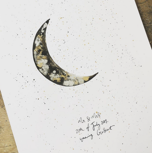 Anniversary or Wedding 'Moon Phase' Ink Bloom Painting