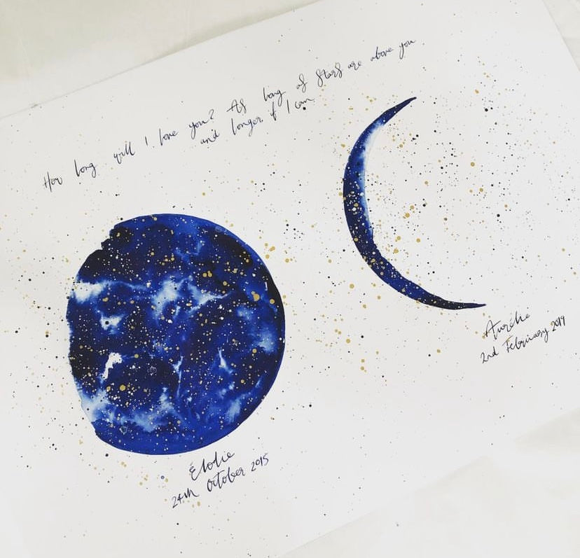 Anniversary or Wedding 'Moon Phase' Ink Bloom Painting
