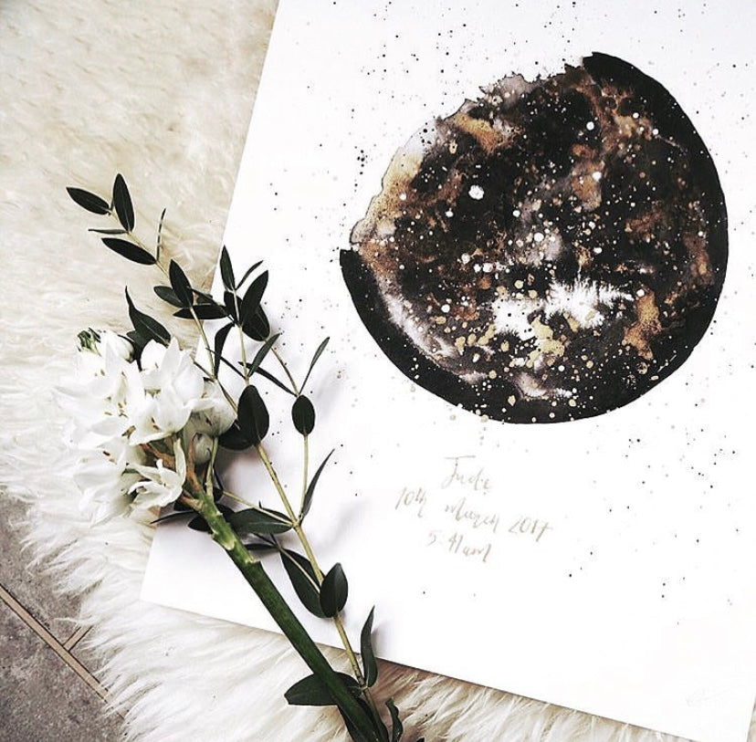 Birth 'Moon Phase' Ink Bloom Painting